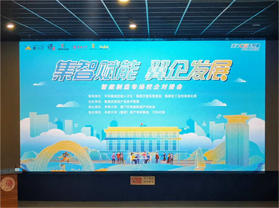 此次活動由中共集美區(qū)委人才辦、集美文教區(qū)管委會、集美區(qū)工業(yè)和信息化局指導,集美區(qū)高校產(chǎn)業(yè)技術聯(lián)盟主辦,華僑大學、廈門市智能制造產(chǎn)業(yè)協(xié)會承辦,華僑大學(集美)政產(chǎn)學研基地、萬科云城協(xié)辦。來自聯(lián)盟成員高校領導、教師代表和廈門智能制造領域70余家企業(yè)代表近120人參加。