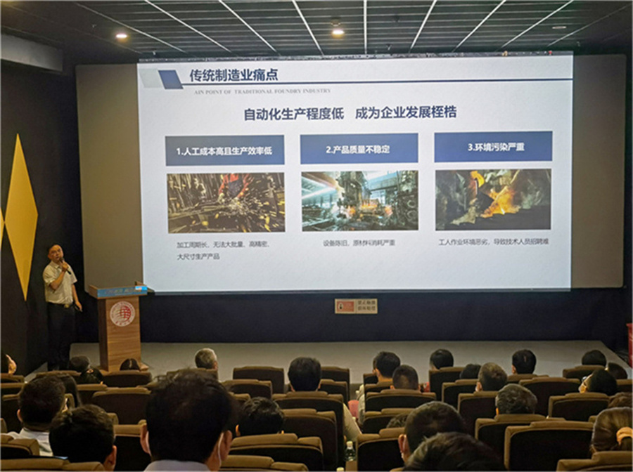 廈門鼎鑄智能設備有限公司(以下簡稱“鼎鑄”)作為企業(yè)代表出席,并應邀上臺分享了傳統(tǒng)鑄造行業(yè)下校企如何攜手創(chuàng)新突破瓶頸,成為此會議六家企業(yè)代表發(fā)言之一