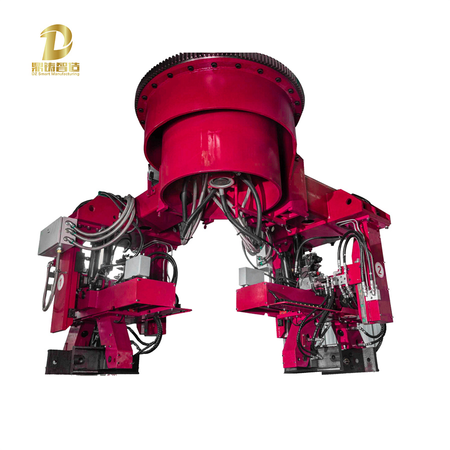 雙工位低壓鑄造機面世以來,以創(chuàng)新的模式,采用全數(shù)字控制系統(tǒng),并在同心旋轉裝置上安裝兩個機械手,使金屬液在密封的熔爐中,在干燥的壓縮空氣作用下,實現(xiàn)鑄造全流程生產過程閉環(huán)管控,達到一模多出,自動高精品鑄造。